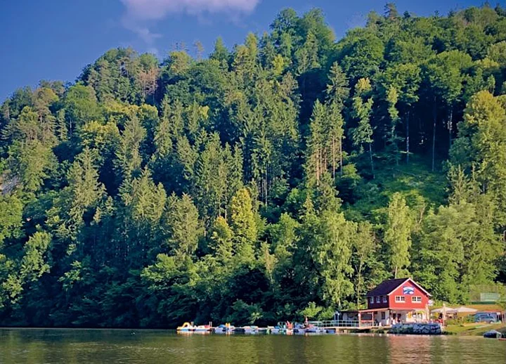 Bootsbetrieb am Stausee Thurnberg und familienfreundlichen Freizeiteinrichtungen