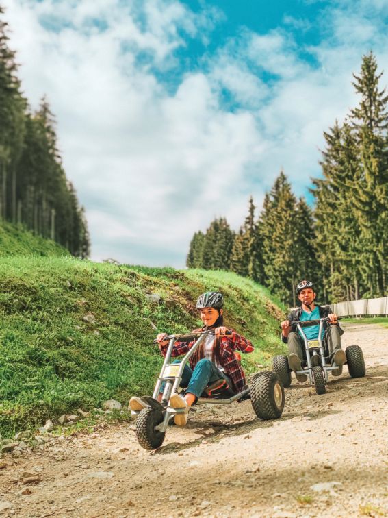 10 % Erm. auf eine Mountaincarts-Schnupperkarte pro NÖ Familienpass-Inhaber. Die fast 3 km lange Mountaincartsstrecke beginnt direkt bei der Bergstation u. führt über Wiesen u. Steilkurven, Ziehwegen u. Wellen den Berg hinunter zur Talstation. Somit ist das die ideale Attraktion für Groß u. Klein.