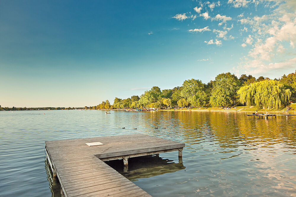 Familienfreundliche Anlage am Neufeldersee: Strandbad, Camping und Mobilheimplatz, schwimmen, tauchen, segeln, surfen, fischen usw.!