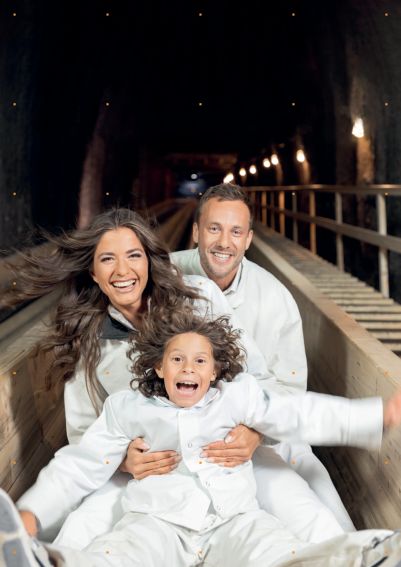 € 2,- Erm. pro Erw.! Mit der Grubenbahn u. über rasante Holzrutschen geht es hinab in das Herz des Berges. Eine Zeitreise durch vier Epochen führt vom modernen Bergbau u. über die glanzvolle Barockzeit in das Mittelalter bis zu den keltischen Bergleuten. Floßfahrt über den unterirdischen Salzsee in die prunkvolle Welt des barocken Salzburgs. Erkundet das Keltendorf SALINA u. die Salz-Manufaktur mit der Salzwelten-App.