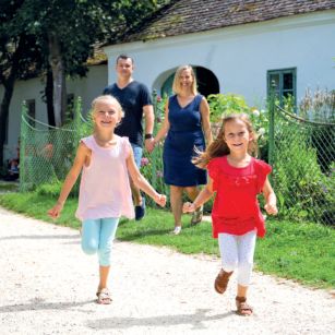 € 12,- Eintritt pro Familie (Kinder -18 J. unbegrenzt, max. 2 Erw.). Ein Dorf wie damals - mit Bauernhöfen, blühenden Gärten, Naturspielplätzen u. vielen Tieren - stellt das ideale Ziel für Familienausflüge dar. Führungen für die Familie jeden 1. Sonntag im Monat um 15.00 Uhr! Sommerferien: Lehmziegel "schlagen“ an der Lehmbaustelle (Mo, Mi-Fr), Bastelprogramm (Di).