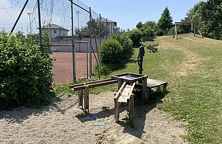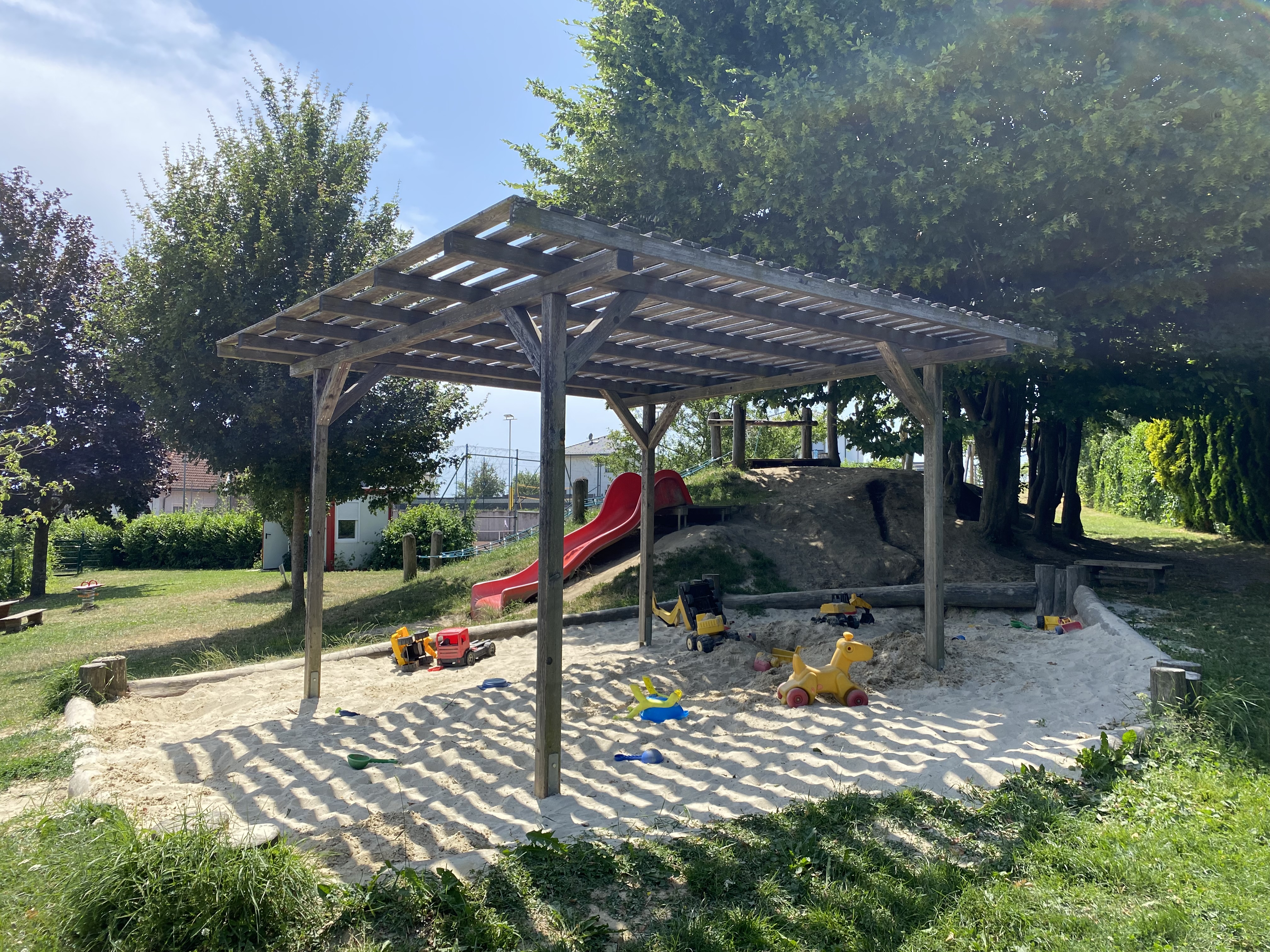 - Sandspielbereich mit Wasserpumpe