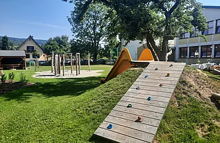 Für alle, die es lebhafter mögen, hält der Schulgarten ein abwechslungsreiches Spielangebot bereit, dass für Bewegung und Spaß sorgt und gleichzeitig Geschicklichkeit und Koordination fördert.