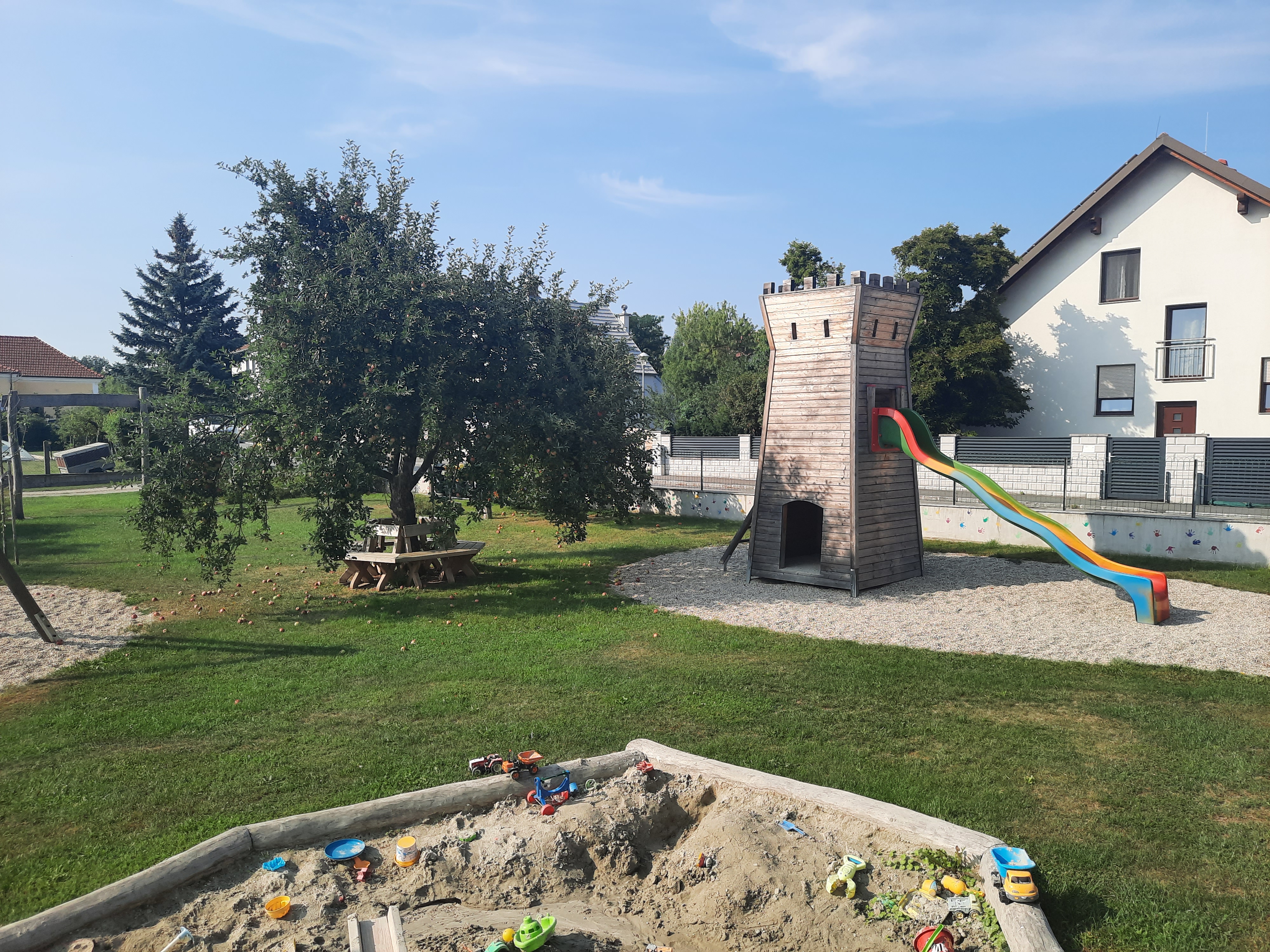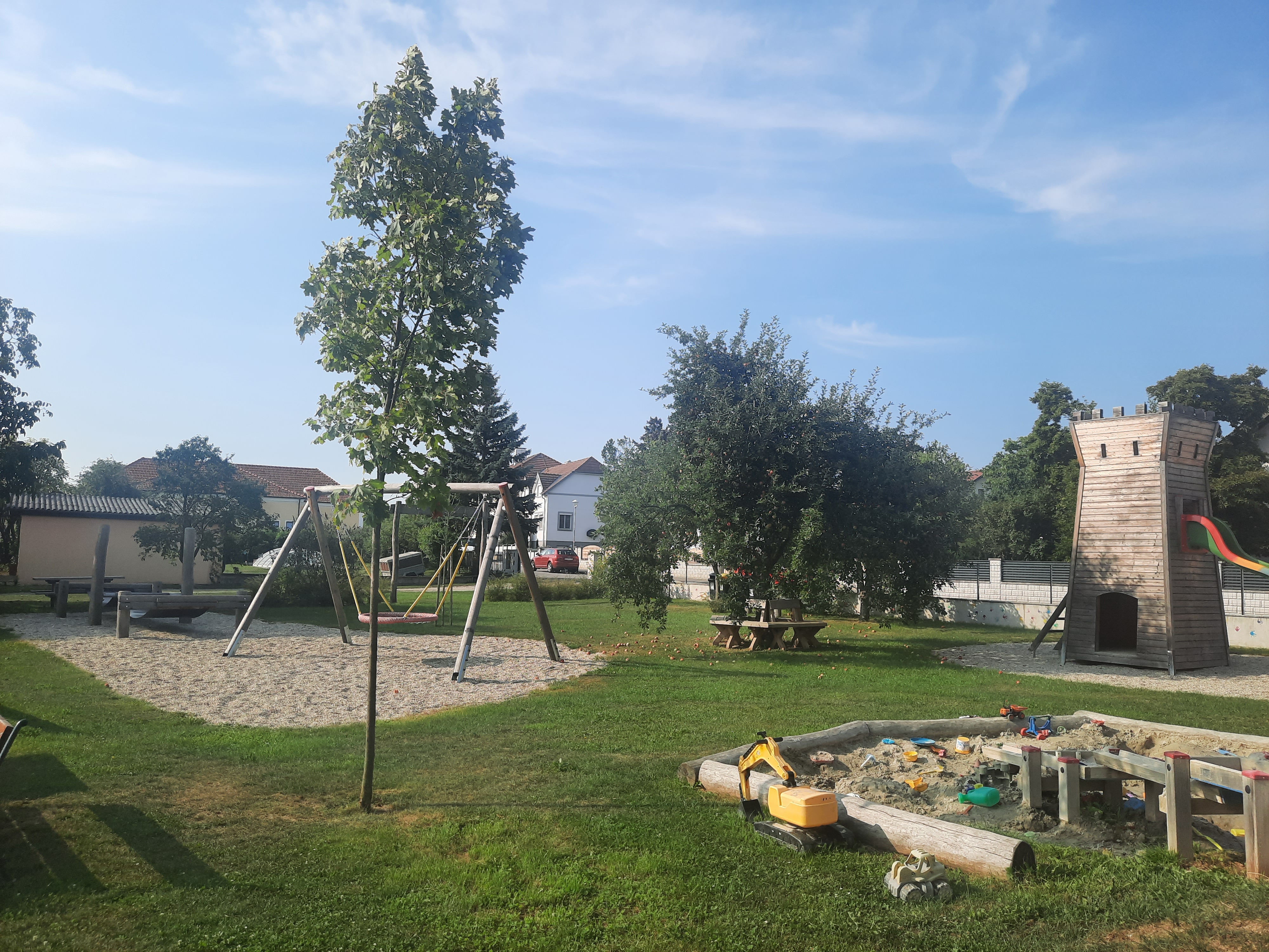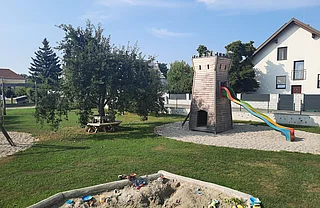 - Sandspielbereich mit Wasserspiel