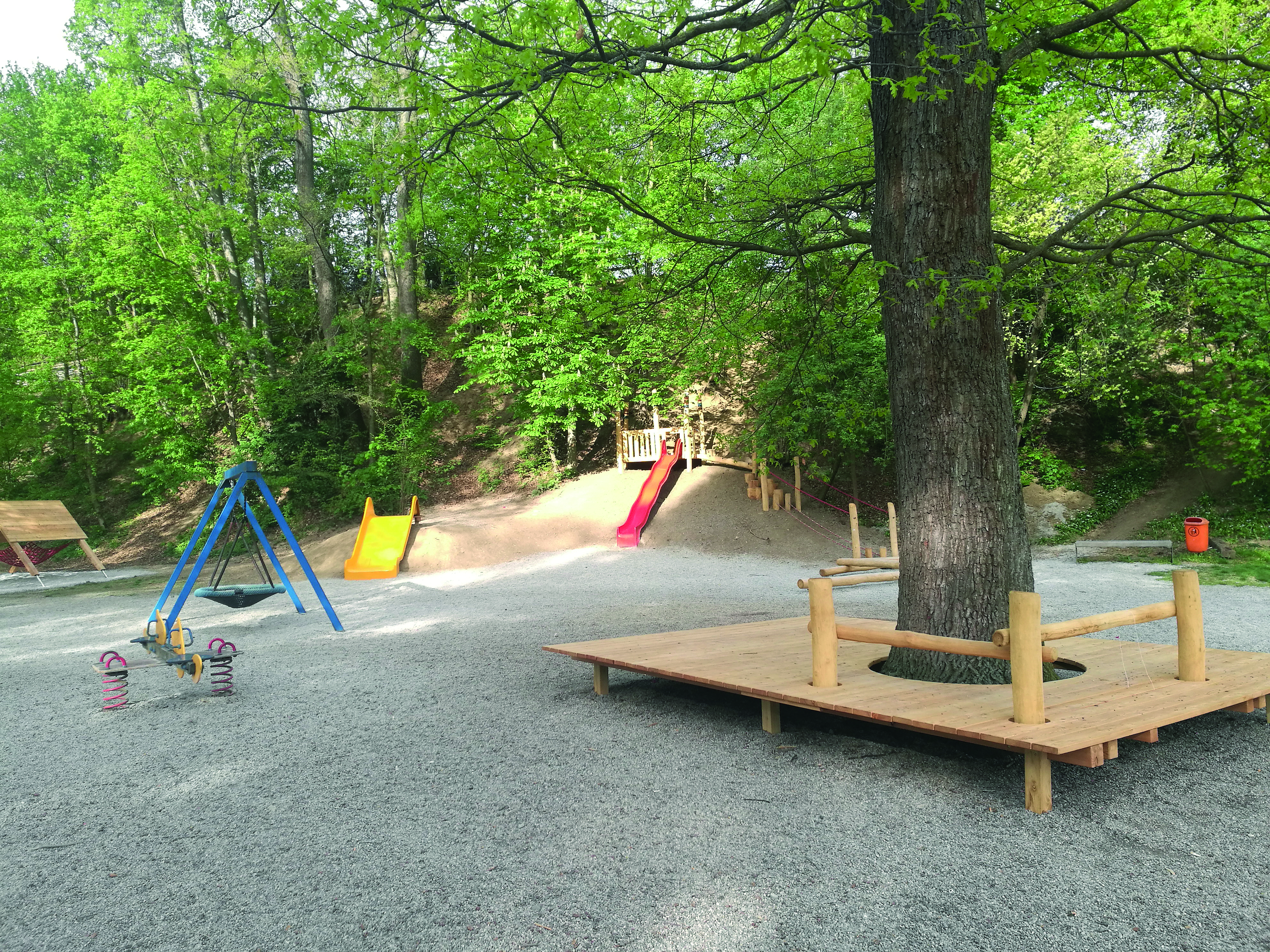 - Balancierstrecke mit Baumstammmikado und Hangsteiger