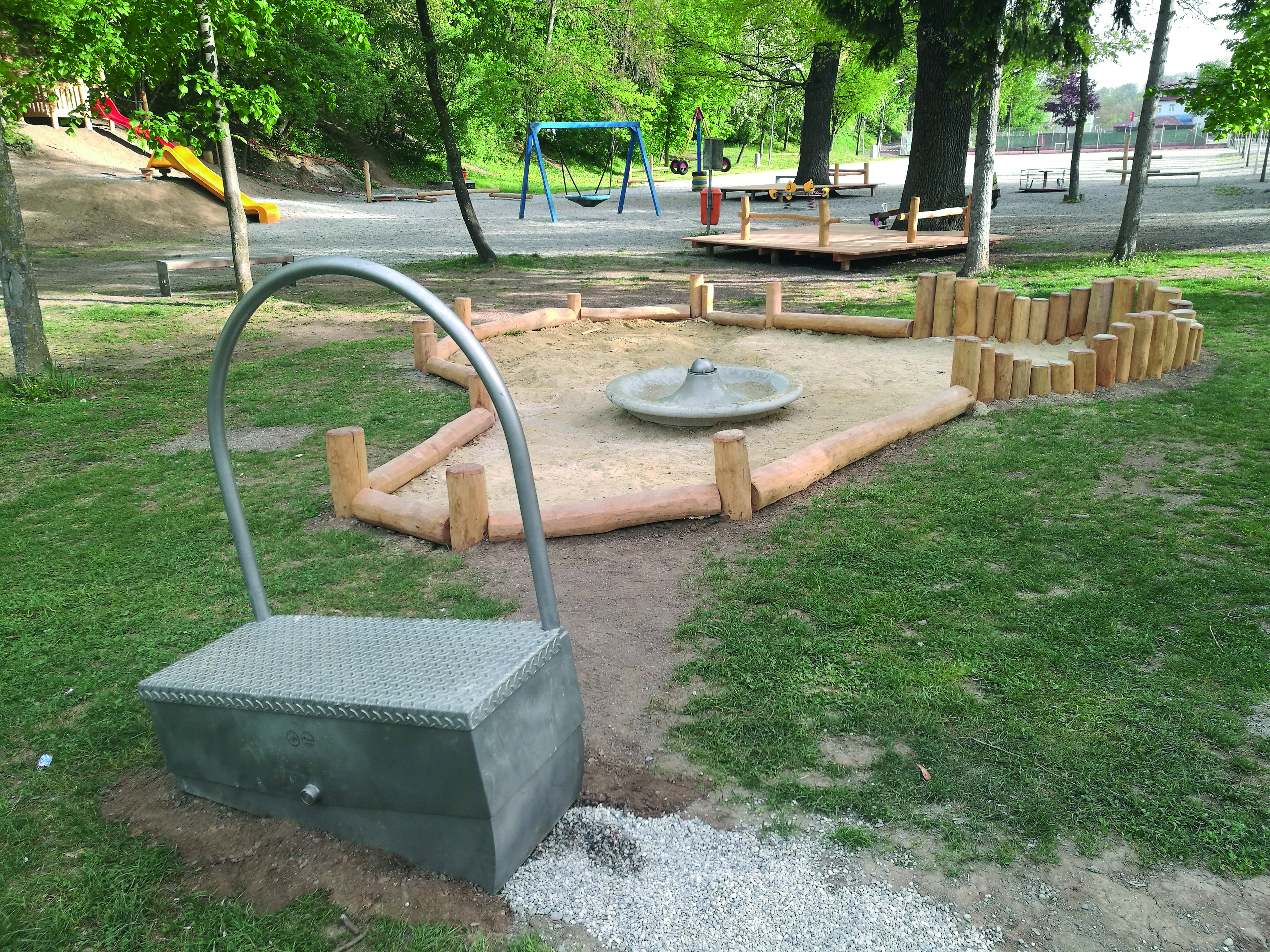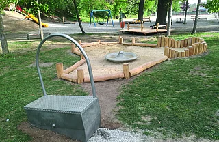 - Sand-Wasserspielbereich mit Wipp-