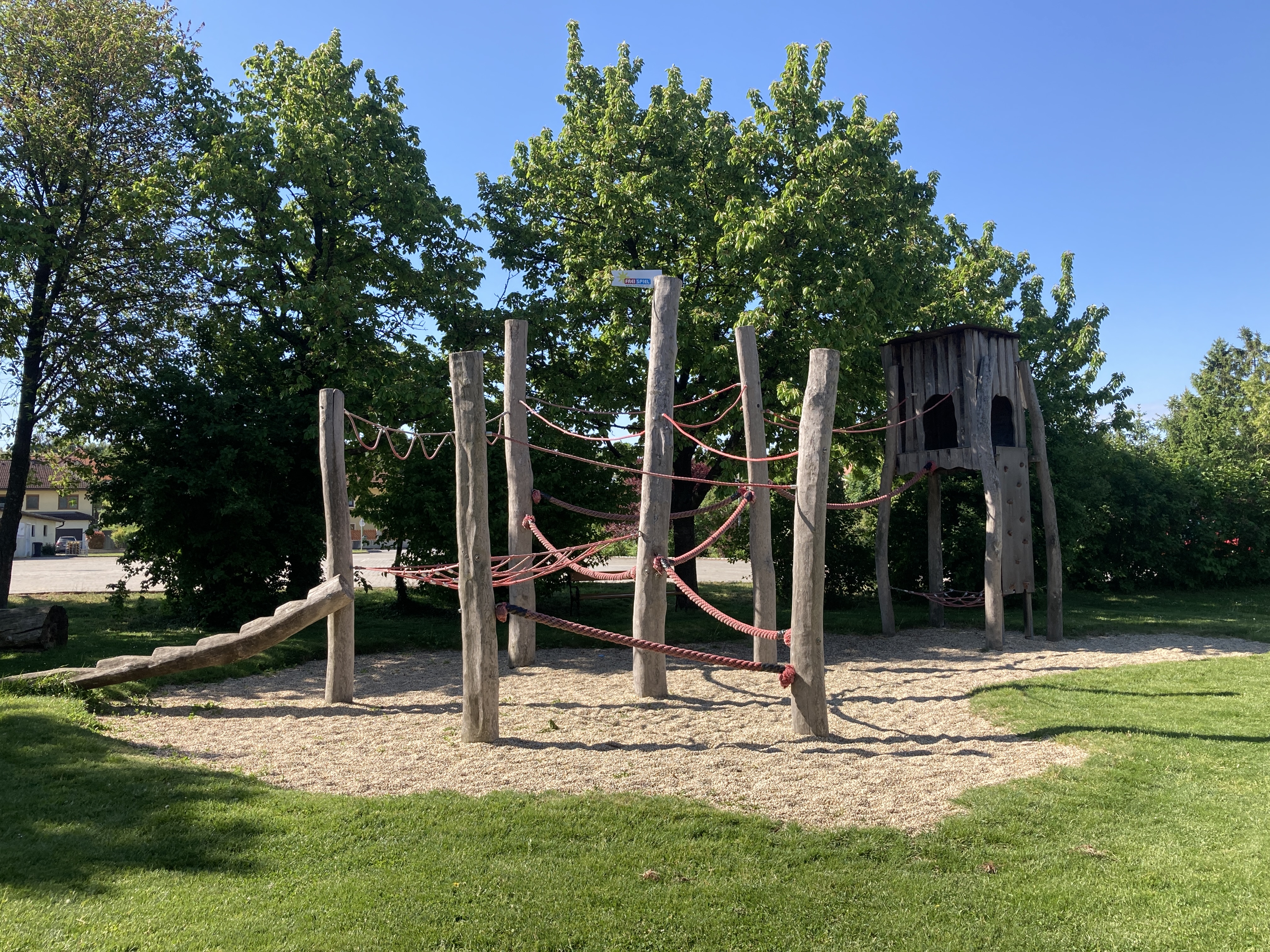 - Stelzenhaus mit Kletterwand und Balancierparcours