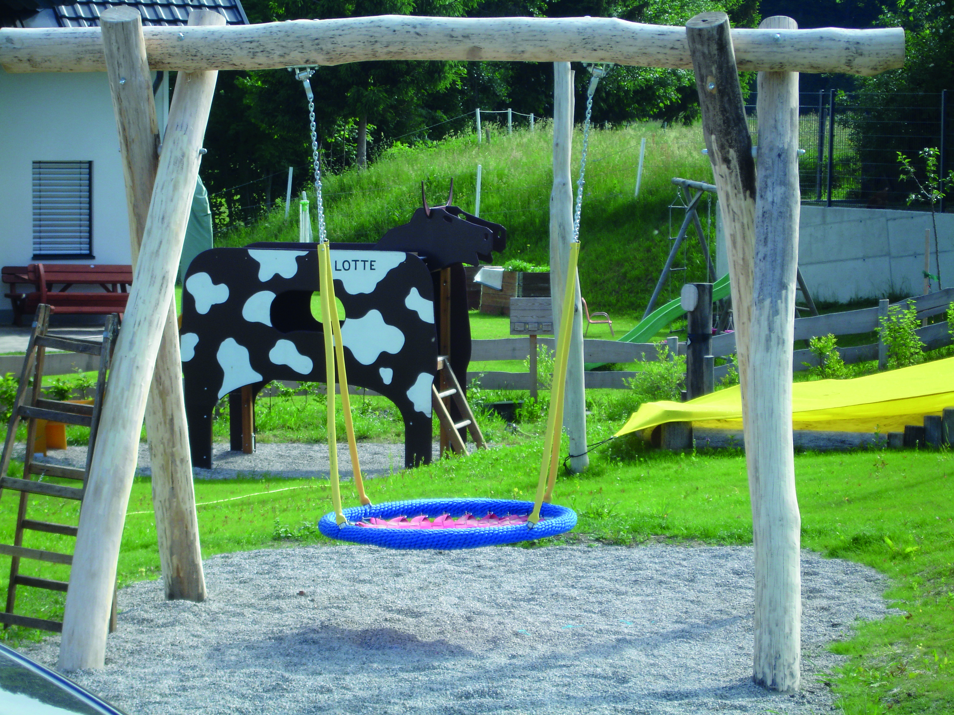 - Stelzenhaus in Gestalt einer Kuh mit angebauter Wendelrutsche