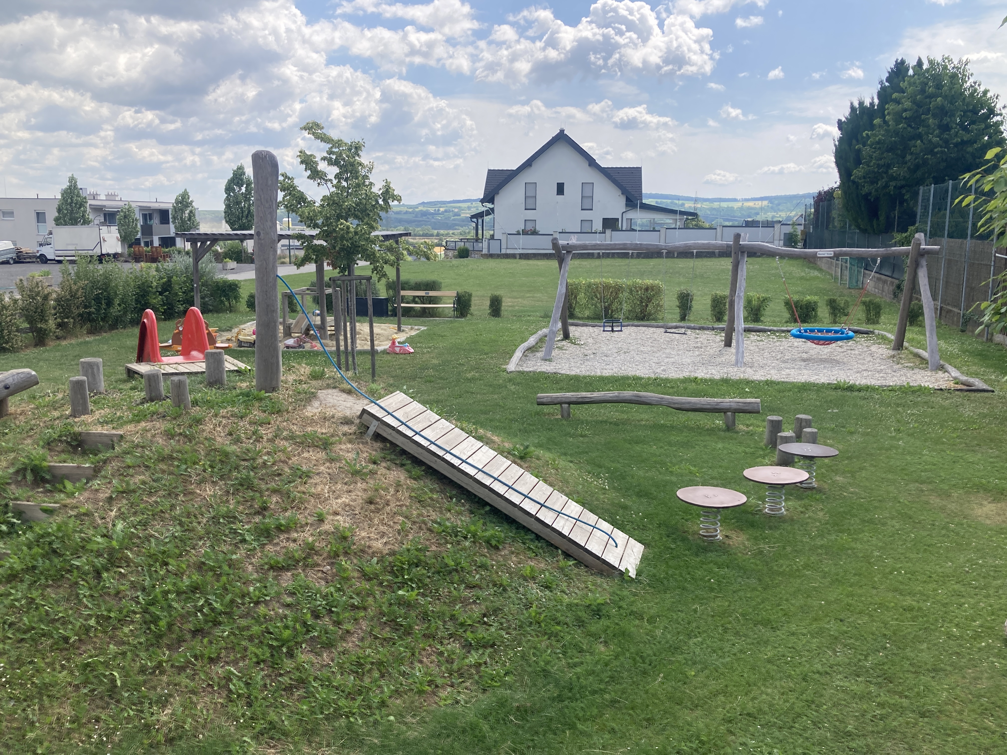 - Hügel mit Rutsche und Balancier-/Aufstiegselementen