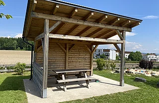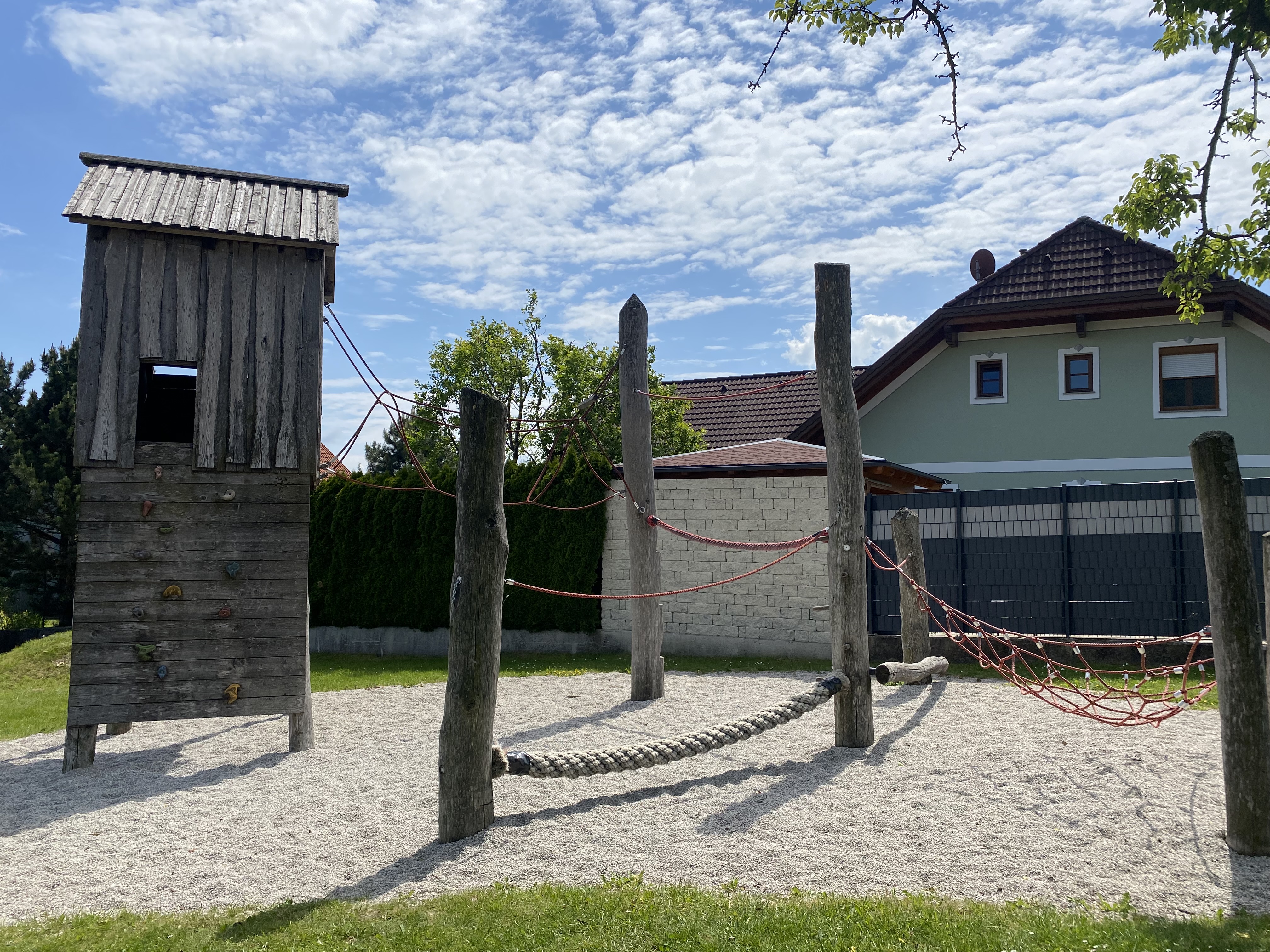- Stelzenhaus mit Kletterwand und Seiledschungel