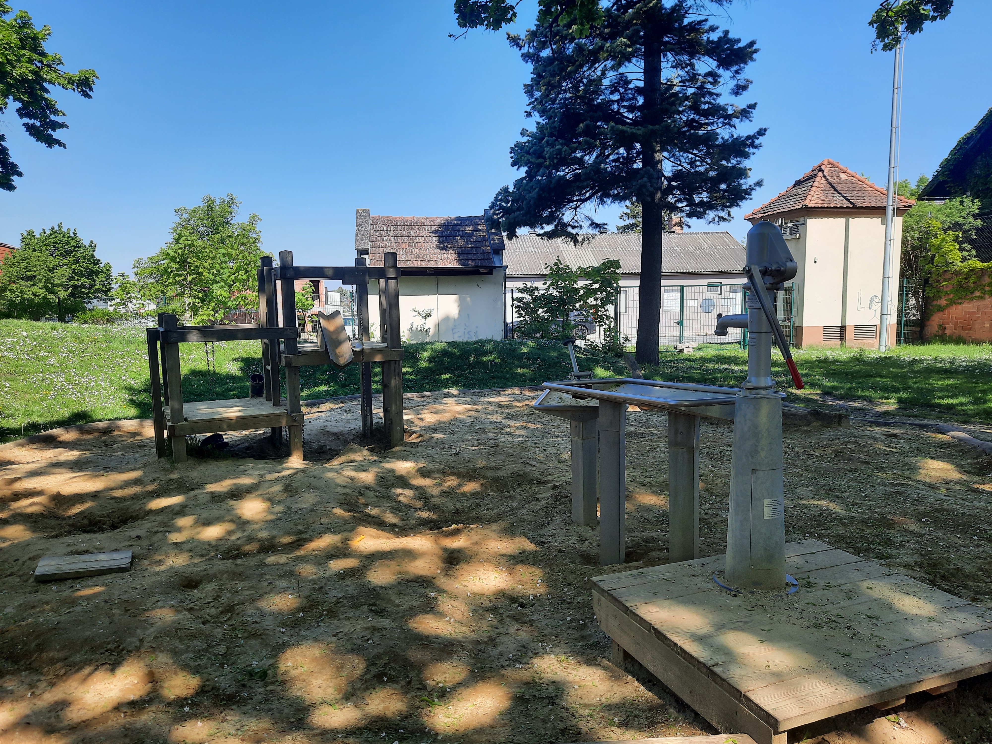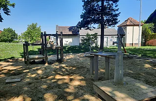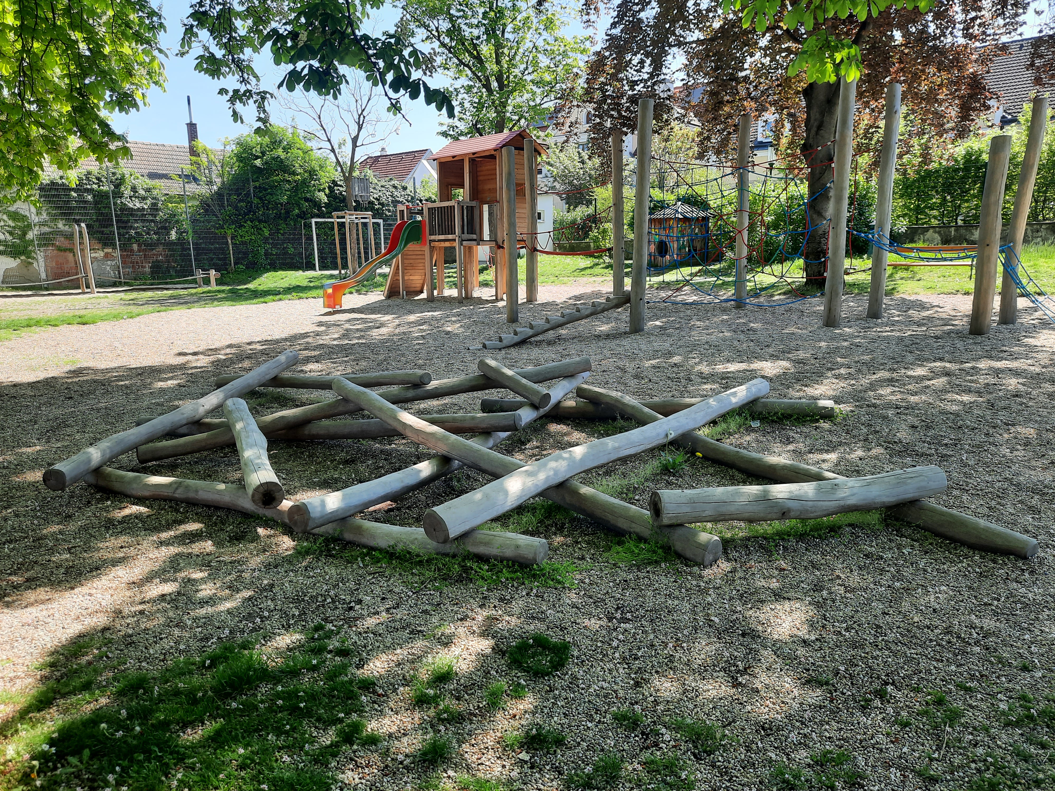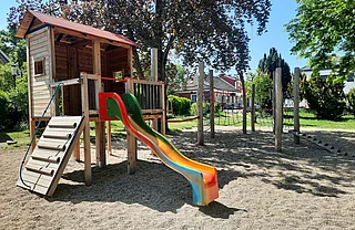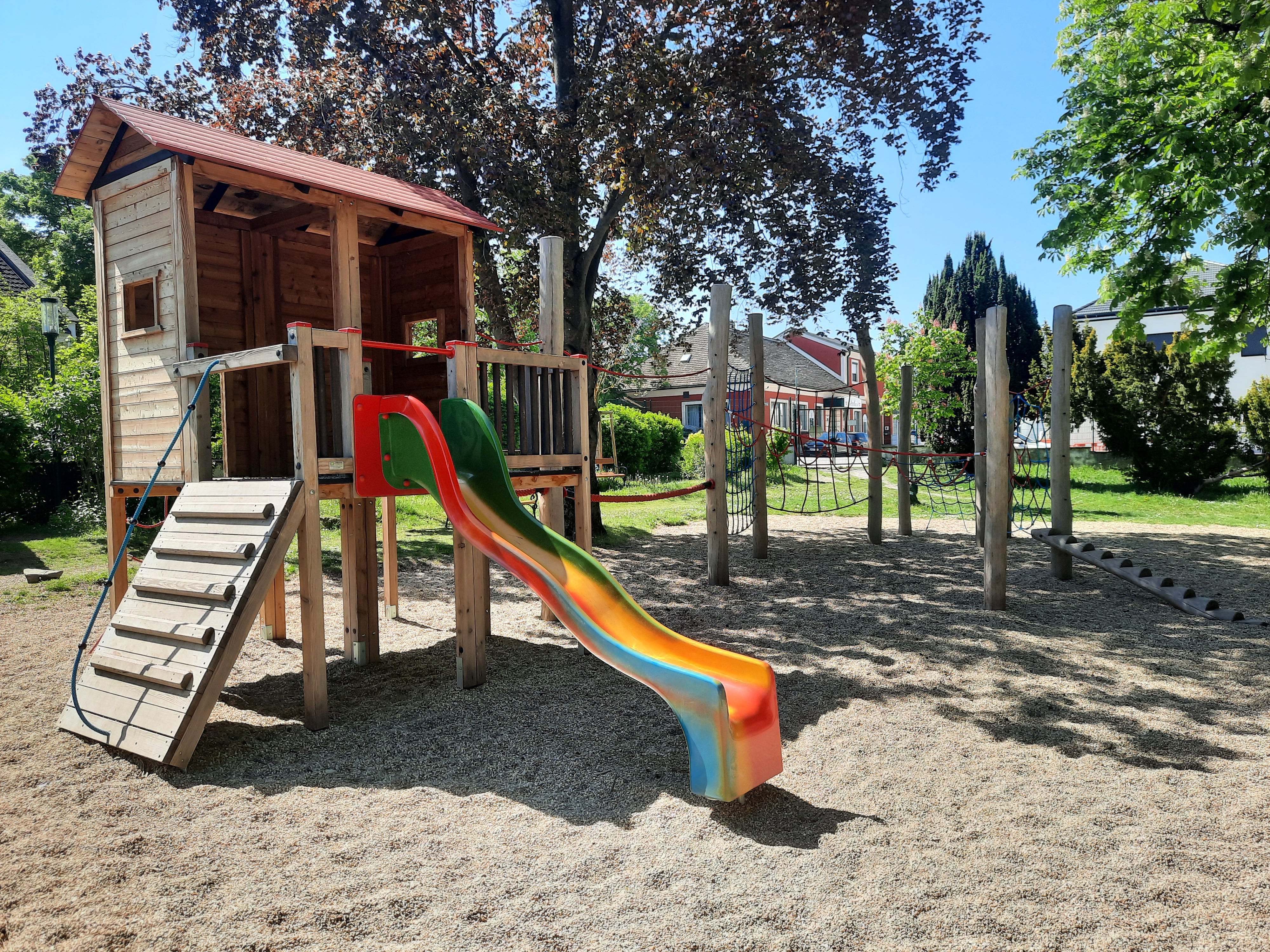 - Spielhaus mit Rutsche und Bergsteigerwand